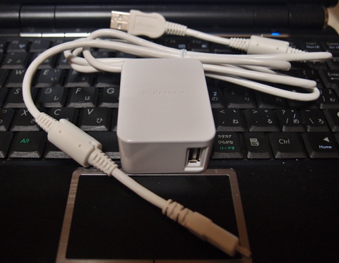 昨今の携帯端末の充電ケーブルはmicro Bで標準化されているので、このようなACアダプタはいくつあっても良いですね。