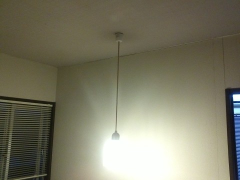 ペンダント器具が透明なガラス製グローブで上の方向が暗くなってしまうんですよねー。