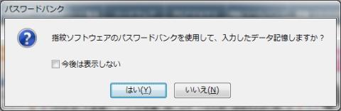 また、Cromeなどのブラウザでは登録可能なフォームでログオンすると、パスを記録するかどうかのダイアログが表示され、OKを押すと登録ウィーザードが表示される。