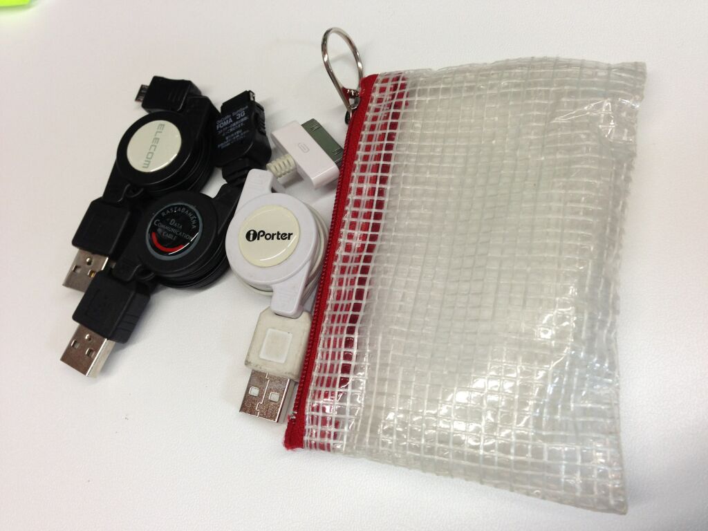 充電ケーブル類をまとめてますよ。