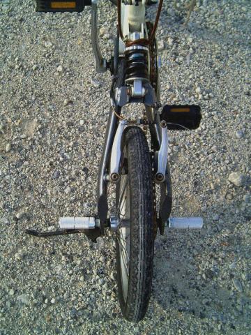 いた折りたたみ自転車。