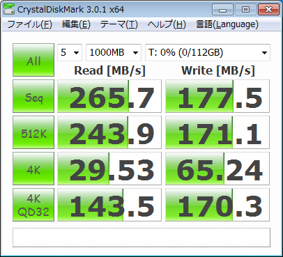 一応、Crystal Diskmarkは取得しましたので載せておきます^-^