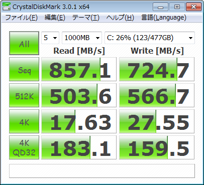 2枚目はちゃんと6GbpsのSATAにつないだ記録。