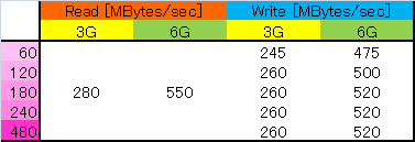 今回は120GBのモデルにつき3GではRead280MB/s、Write260MB/sというのが目安になります。