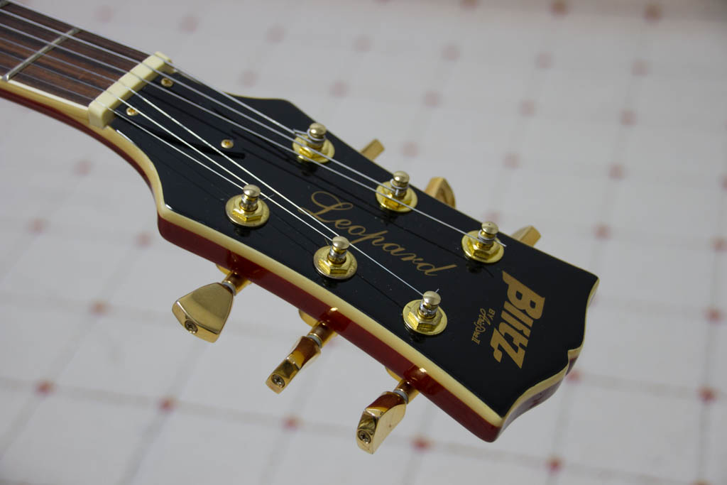 Gibsonだったら「Les Paul」とか書かれているはずの部分が「Leopard」になっています。まがい物っぽいですね^^