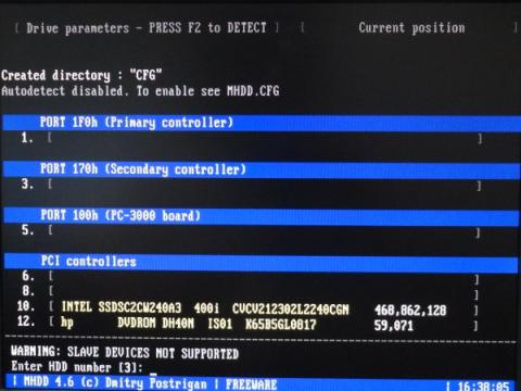 HDDメンテナンスツールのMHDDが同様の機能を持っているようなので、HDAT2の代わりにMHDDを用いて試してみた。