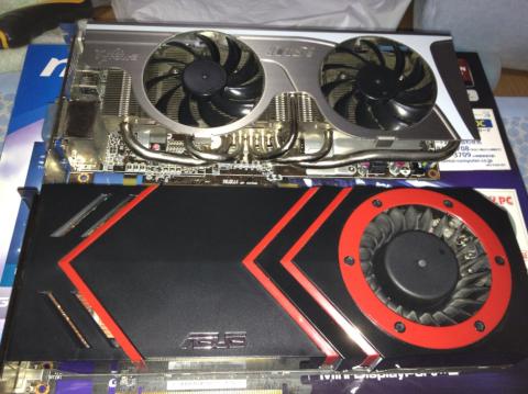 上の製品が今回の製品です。下はASUSのEAH5870/2DIS/1GD5/V2という製品です。動かなかったので、残念ながら持ち物に乗せずに、処分します。