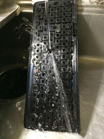 キートップは、上カバーと一体に外れてプラスチックだけのシンプルが構造なので、こうした洗い方ができて助かりました。