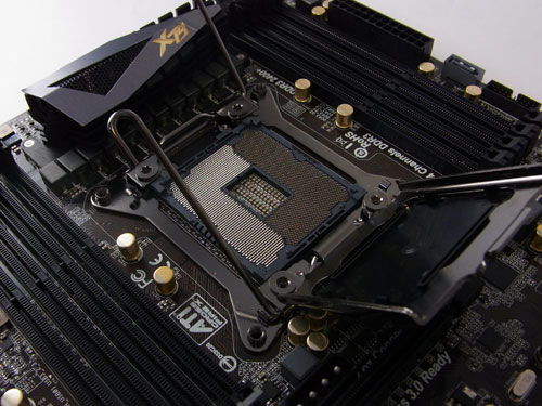 それにしてもLGA2011ソケットの巨大さには圧倒される。メモリスロット8本といい、よくもまあATXフォームファクタに詰め込んだものだ。