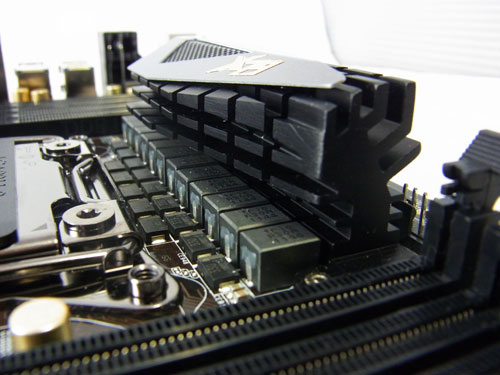 そしてデザインが統一された電源フェーズ部&チップセットヒートシンクは妙にカッコイイ。