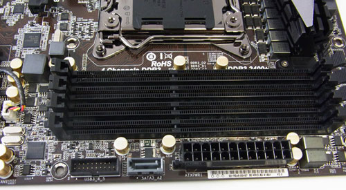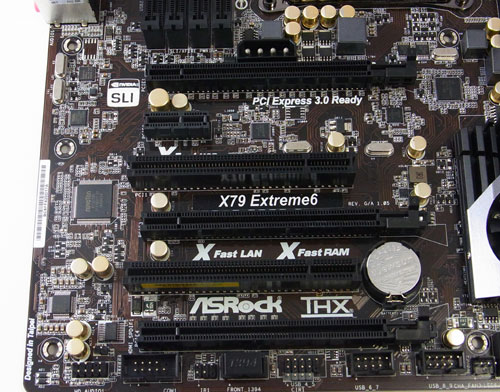 という訳でVGAは2枚までが実用域になるが、ある意味この価格帯のX79マザーを狙う層を判っている構成かもしれない。スロット上部にはペリフェラル4pinコネクタが補助電源として用意されているが、マルチGPU環境でなければ接続は不要だ。
