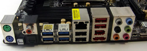 X79は統合グラフィックを持たないので、背面パネルはインターフェイスが集中する。オンボードサウンドはRealtek ALC898、IEE1394はVIA、GbELANはBroadcom BCM57781となっている。eSATAは内部追加ポートと同じくASMedia製チップによってコントロールされている。
