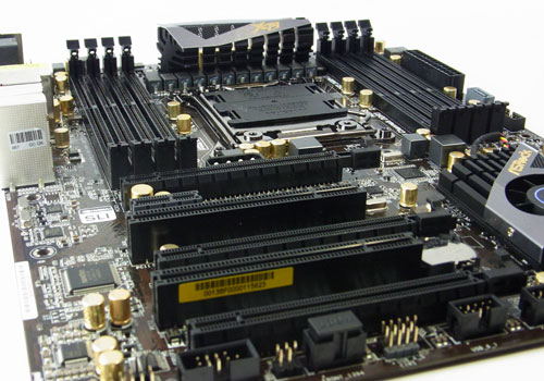 と、マルチGPU構成をするなら実質2way向きな構成。X79はZXX系に対して、帯域に余裕があるというアドバンテージがあるので、VGAを2枚挿しても双方x16動作が可能だ。