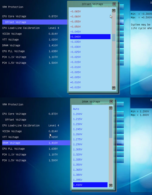 UEFIは以前使用したZ68のIvy対応アップデート後に準拠したブルー系のデザイン。設定画面やレイアウトや項目名はほぼ従来型BIOS準拠なのもそのままで、それらに慣れている人には扱いやすい。