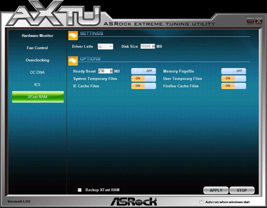 お次はソフトウェア…いくつかのソフトが添付されるのだが、今回選択の大きなポイントとなったのはASRock eXtreme Tunerに統合されている 「X Fast RAM」だ。少し前の世代のマザーではAXTU統合ではなく、単体のソフトウェアとして提供されており、機能的には同じもの。