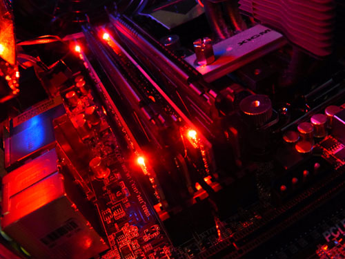 更に更に、せっかく両側にメモリスロットがあるのだから無駄に光るメモリクーラーも装着。きっちりX79を見越して2つ買ってあったのだ(マテ)。せっかくの混載が隠れるがきにするな!