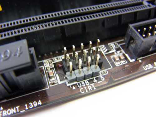 USBは2.0が4ポート、USB3.0が4ポートだ。X79チップセットはUSB3.0をサポートしていないのでこちらも外部チップでの実装となりTexas Instruments製コントローラとのこと。尚、フロントパネル用ピンヘッダはASMedia製コントローラを使っているので、2種類のUSB3.0ドライバをインストールする事になる。