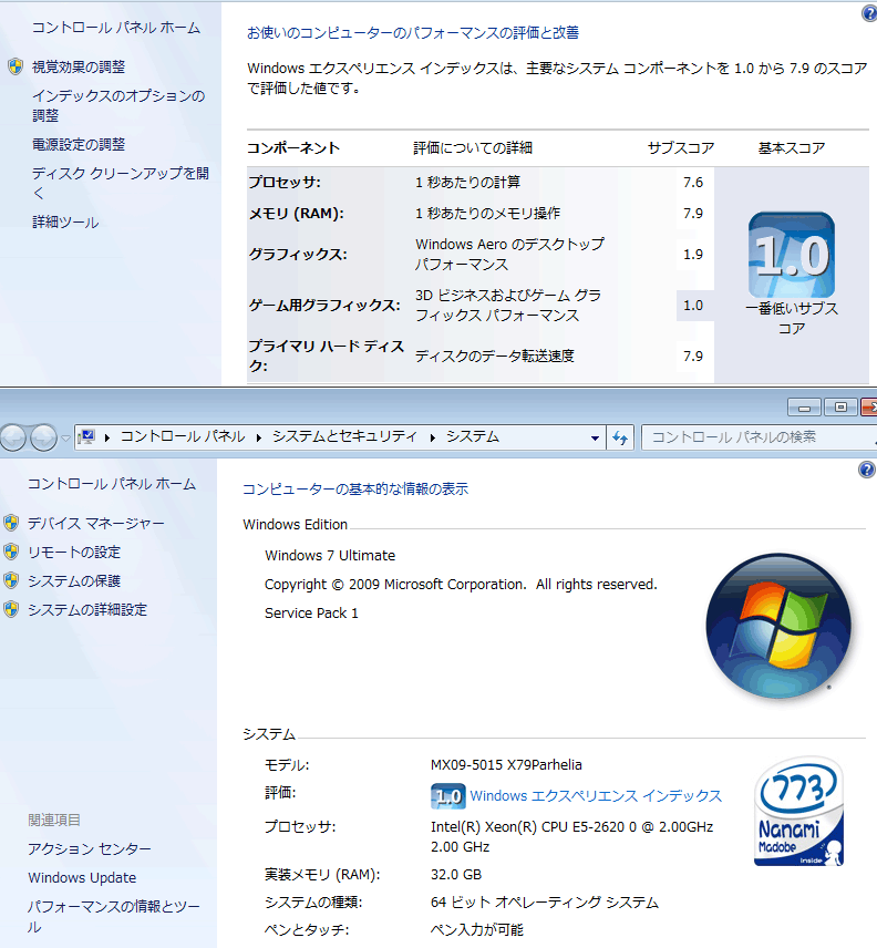 CPU側はサポート外なものの、あっさりDDR3-1600動作に成功し、クアッドチャネルの恩恵でエクスペリエンスインデックスメモリスコアは同じメモリモジュールを使用しながら7.8→7.9への速度アップを果たした。
