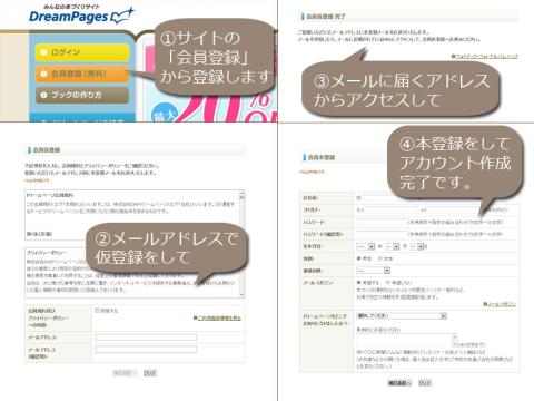 簡単に、本格的なフォトブックができるのは楽しみですね。まずは、アカウントの作成をします。