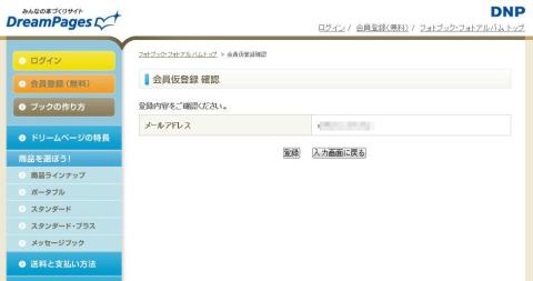 ここで登録したメールアドレスが今後ドリームページで利用する「ID」になるので、複数メールアドレスを利用している人は注意してください。