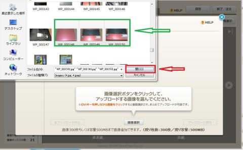 画像300 枚もしくは 500MBまで追加出来ますので、今回必要なデータを
