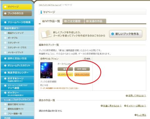 マイページの「MY作品一覧」で今回作った、作品の「カートに入れる」をクリックします。