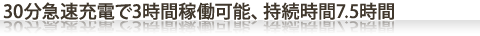 ・30分急速充電で3時間稼働可能、持続時間7.5時間のバッテリー