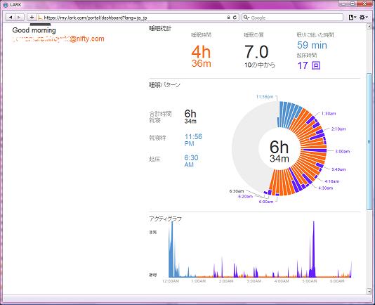 iOS端末を使って、睡眠状態を記録することができる。無料で提供されている専用アプリ「LARK UP」を使って、端末とBluetooth接続でアラームの設定や睡眠データの通信を行う。