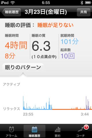 振動するより先に目が覚めた場合は、クレードルにセットして、iPod TouchからOFFにする。