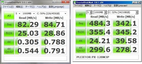 安定性重視(最悪は読み込みだけはできる事もあるという話)の東芝にしたかった事と、コントローラは圧縮SandForceは避けたかった事と、最近で大きなトラブルが起きてないPLEXTORを選択。