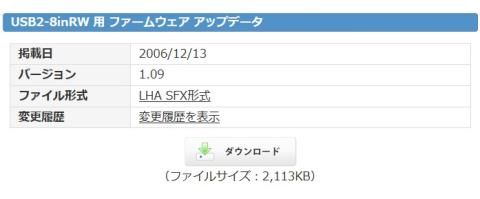アイオーデータ サポートソフトからusb28inrw_f109をダウンロードします