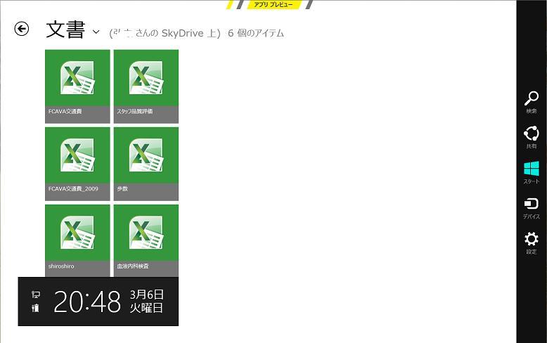 実行方法は、右下にカーソルを持っていき、右側に表示されるメニューから「検索」をクリック