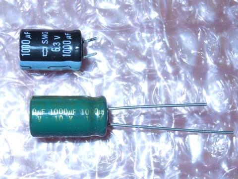 上が交換前の 日ケミ SMG 1000μF, 6.3V、