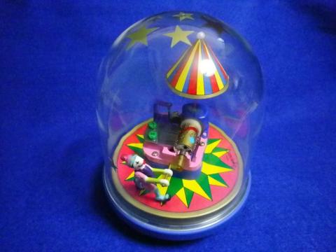 ピエロがゼンマイを巻いているように動きますが、 ゼンマイを巻くツマミは底にありますよ