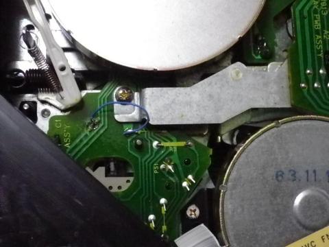 下の画像の基板上の青い線がノーマルテープをS-VHSテープとして認識させる