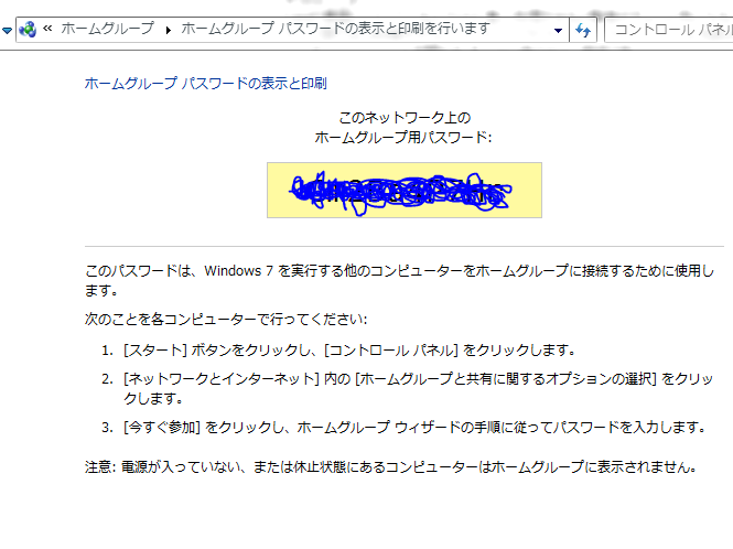 最初に他のPCでホームグループのパスワード表示させたのを書き込めばよかったんだね。