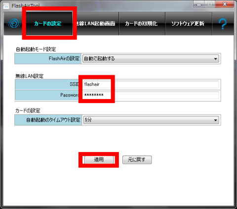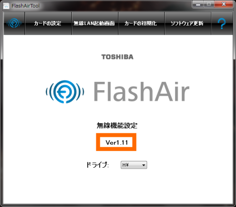 パソコンの場合は、SDカードリーダーにセットして、SDカードの中にある FlashAir.exe を実行します。