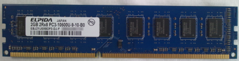 ラストサムライ!ELPIDAメモリのDDR3, PC3-10600, 2GBメモリです。不要部品として引き取ってきましたが、メモリスロットが2本しかない現状では意味なしです・・・。