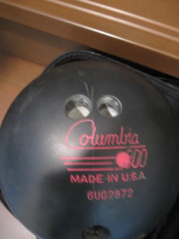 ボウリング場のハウスボールと比べて、指孔がスリムでしょ^^