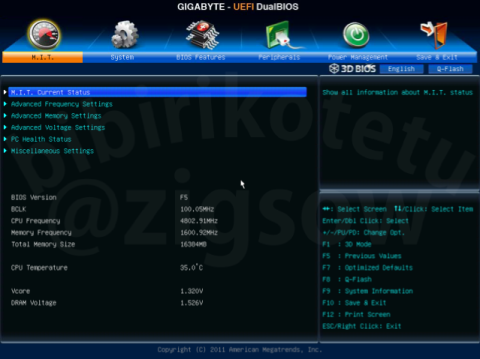 どのマザーメーカーもUEFIが搭載されてから使いやすいBIOS的な画面が増えてますが、この3D仕様もなかなか良さそうですね。