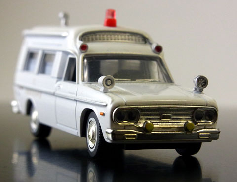 TLVとしては2種類のバージョンが登場したのだが、こちらの高崎消防署版はホワイトリボンタイヤに、シルバーのサイドライン、イエローの警告灯と日本の救急車というより海外の救急車に見える配色だ。