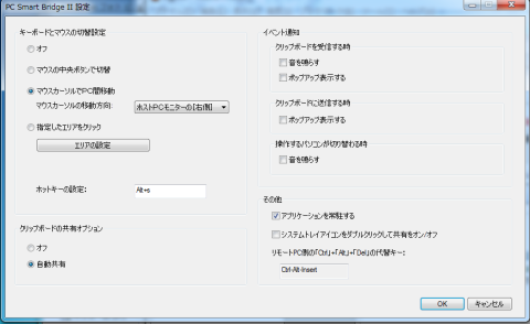 サブ機側では、汎用マウスとして認識されるためサイドボタン等が使えない、マウスの設定はコンパネで可能な設定のみ。(メイン機は、通常通りメーカードライバが使える。)