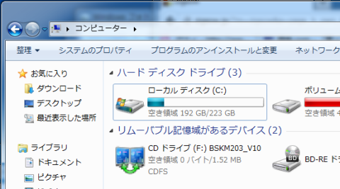 USBコネクタを接続している間は、2台のPCで常時USBデバイスとして認識されている。