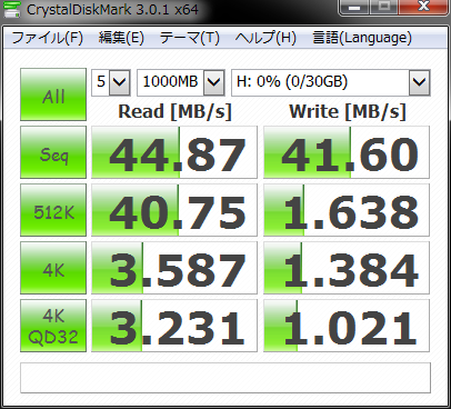 シーケンシャルライトでも40MB/sを超える高速ぶり。