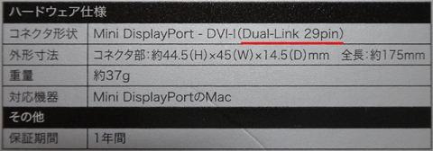 今回ちょっと時間があったので、売り場でケーブルの仕様を確認していると、一つだけDual-Link 29pinというとても小さな記述を見つけました。
