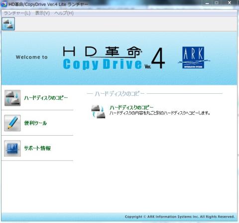 操作は簡単でコピー元とコピー先のドライブを選ぶだけです。