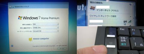 Windowsの初期セットアップと、WiMAXは契約していないので、無線LANを設定しました。無線LANは、ボタンがついているので、