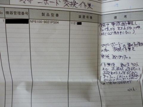 修理にかかった時間は1時間ちょっとでマザーボードの交換という対応でした。