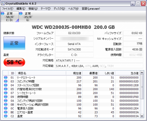 Crystal Disk Infoによると温度高めでしょうか?