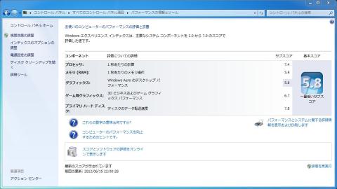 エクスペリエンスインデックス、5.9→7.7に向上です。これでもう当分このPCでいいや感が出てますww